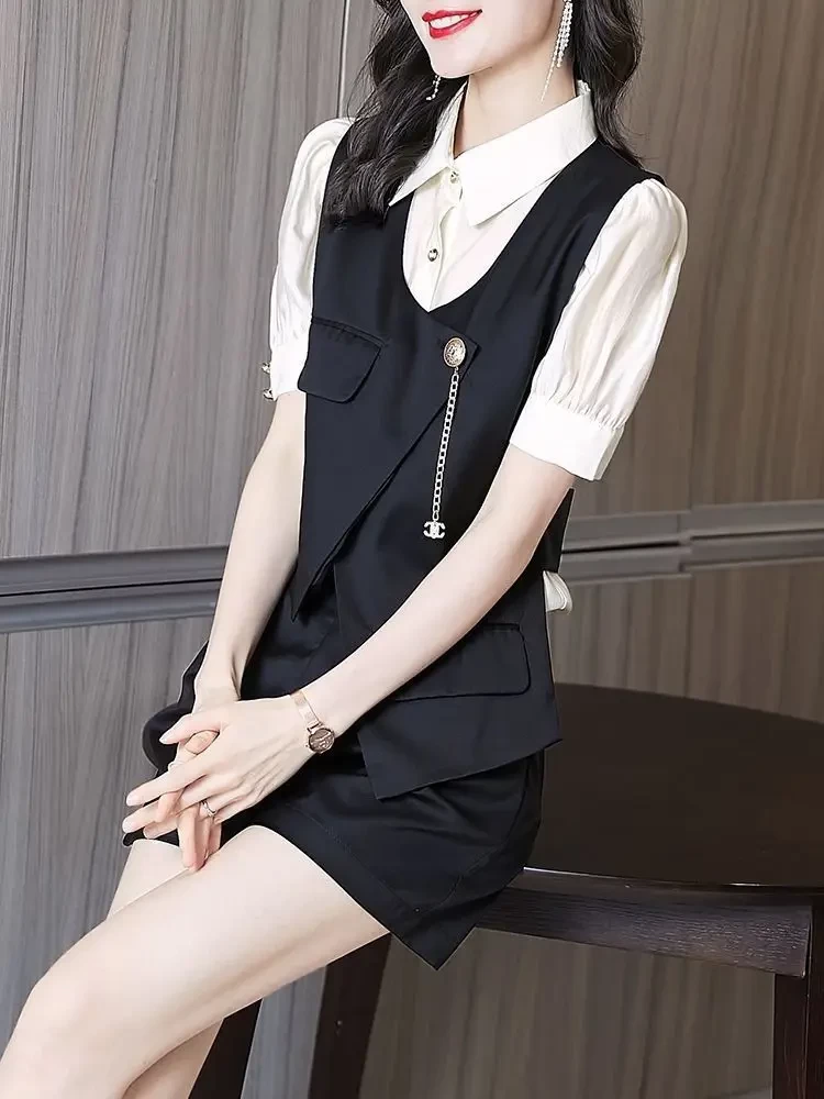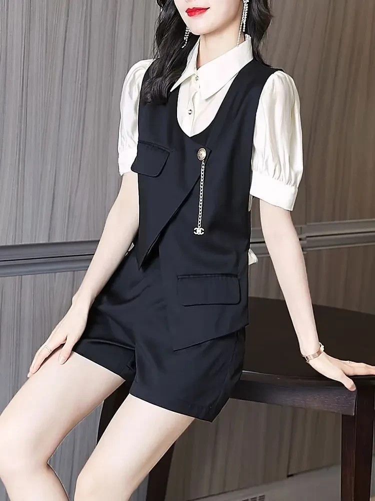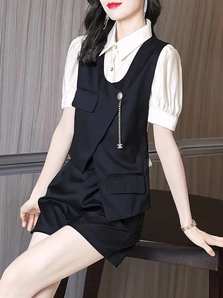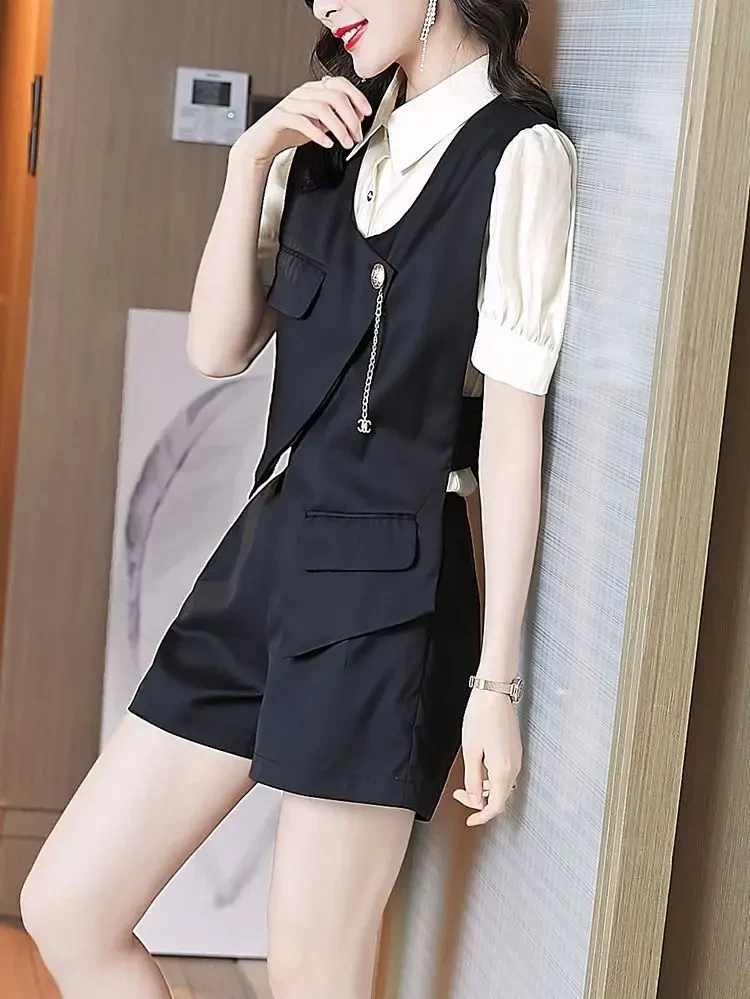 2023 New Summer Fashion Western Style Vest Shirt Shorts Comfortable Age Reduction Three Piece Set Women's Suit