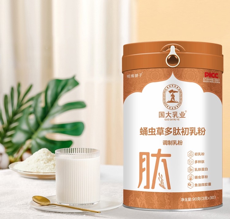 国大乳业 蛹虫草多肽初乳粉90g*1/2/4/6罐 多种肽乳铁蛋白高钙奶粉