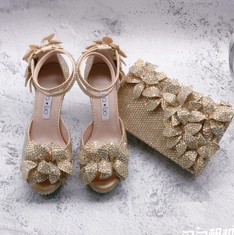 BS1628 New Design Customizable Women Shoes Floral Bridal Wedding Shoes Champagne Gold Flower Shoes With Matching Bag