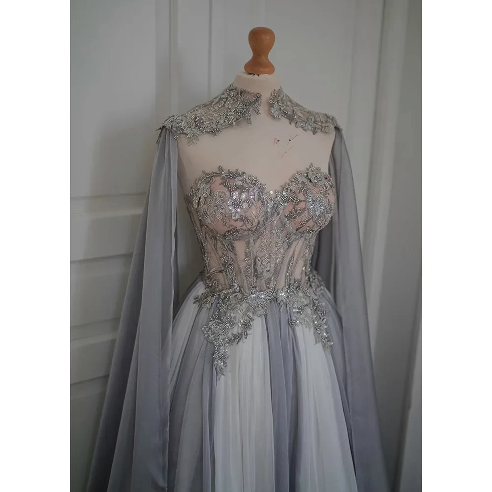 Gorgeous Sweetheart Appliques Beading Evening Dress with Cape Sleeves Fashion Floor Length A-Line Gowns Chic Prom Party Dresses