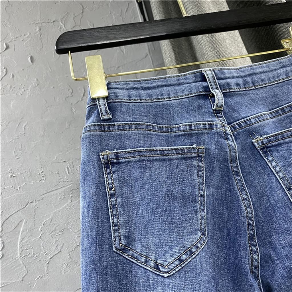 jeans Spring Denim Trousers Pearl Beaded Stretch Slim Jeans for Women Ladies Blue Skinny Flared Jean Feminino (Color : Picture color, Size : L code)
