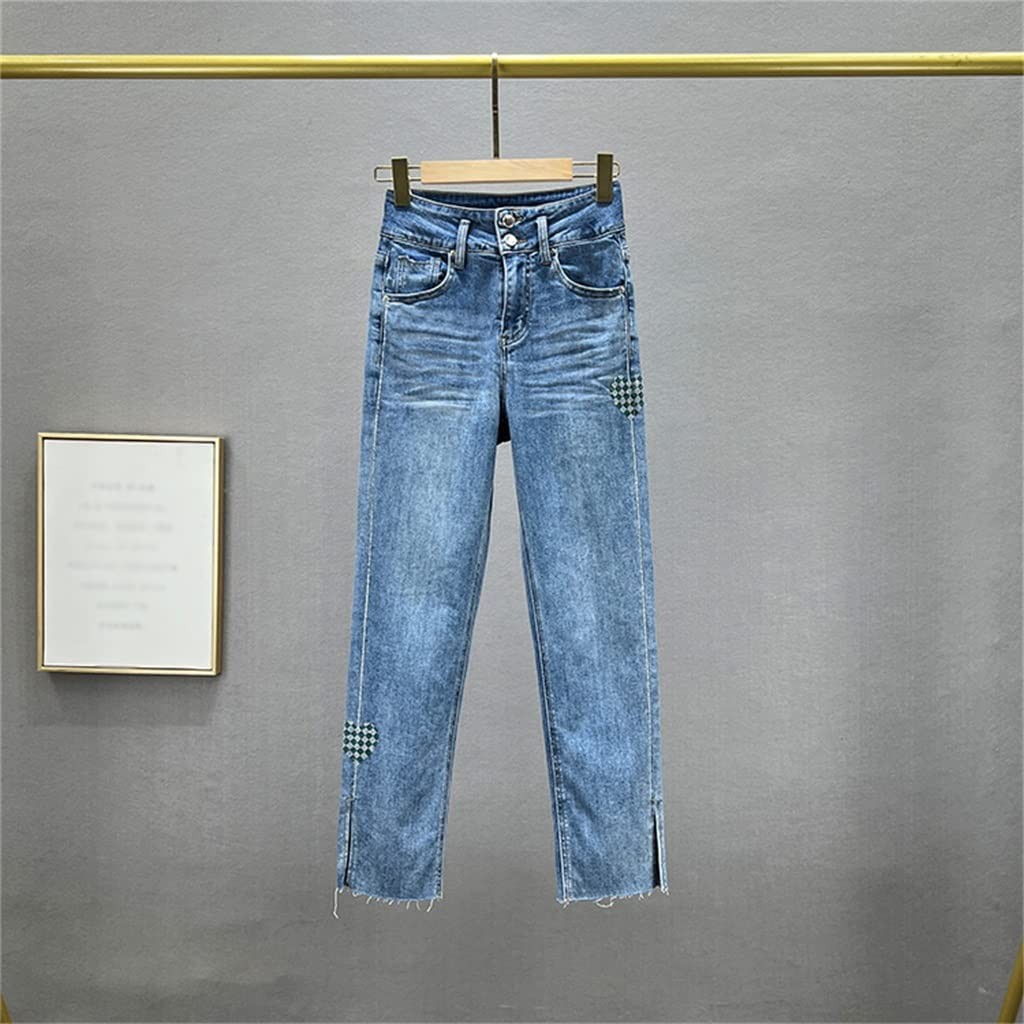 jeans Straight Jeans for Women Spring/summer Elastic Denim Pants Sexy Girls Jean Casual Female Blue Jeans (Color : Picture color, Size : 29 code)