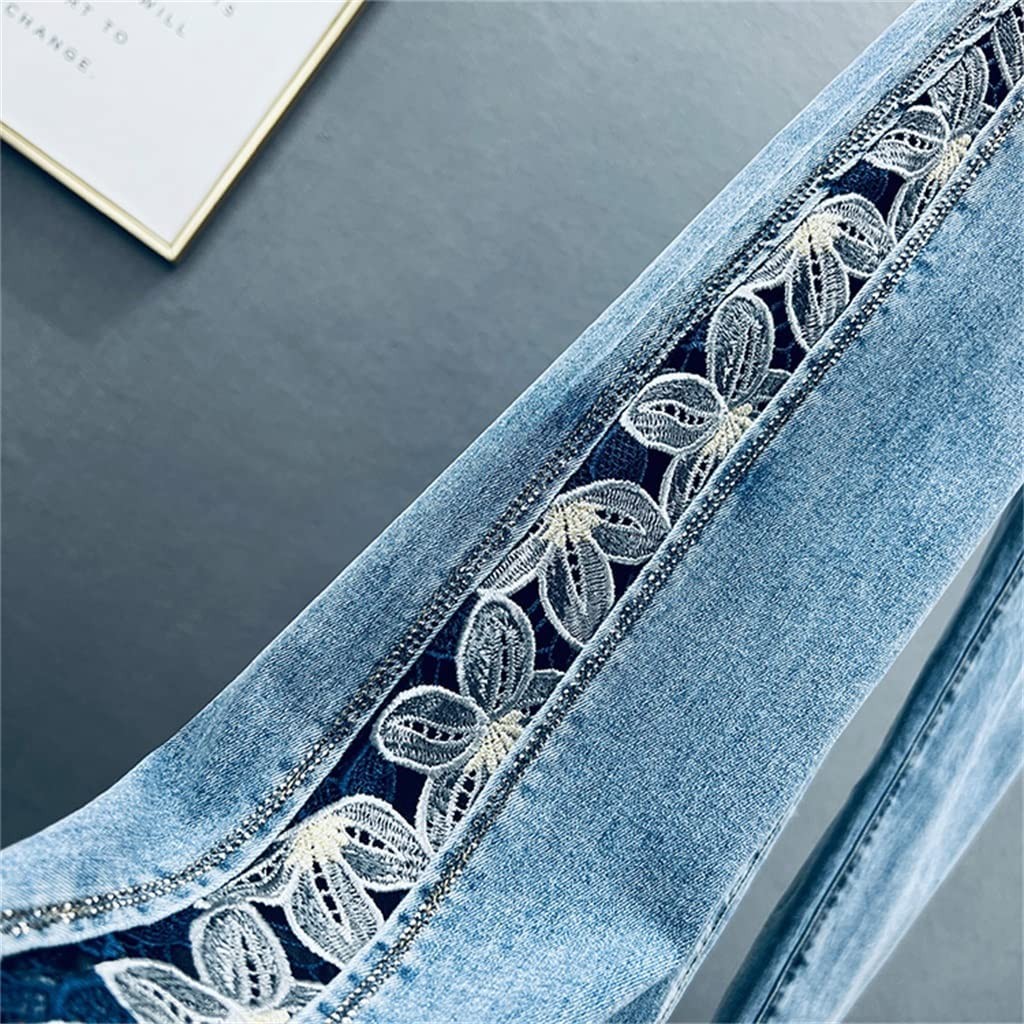 jeans Women's Wide-leg Jeans Spring Summer Loose Hollow out Lace Spliced Denim Office Lady Jean Trousers (Color : Picture color, Size : 27 code)