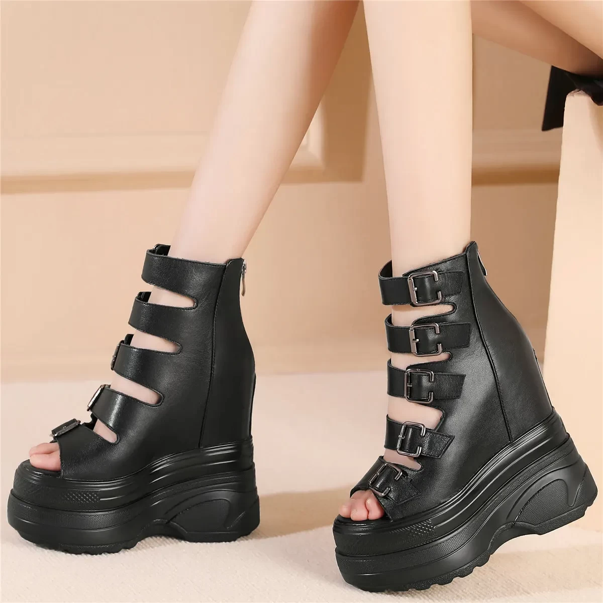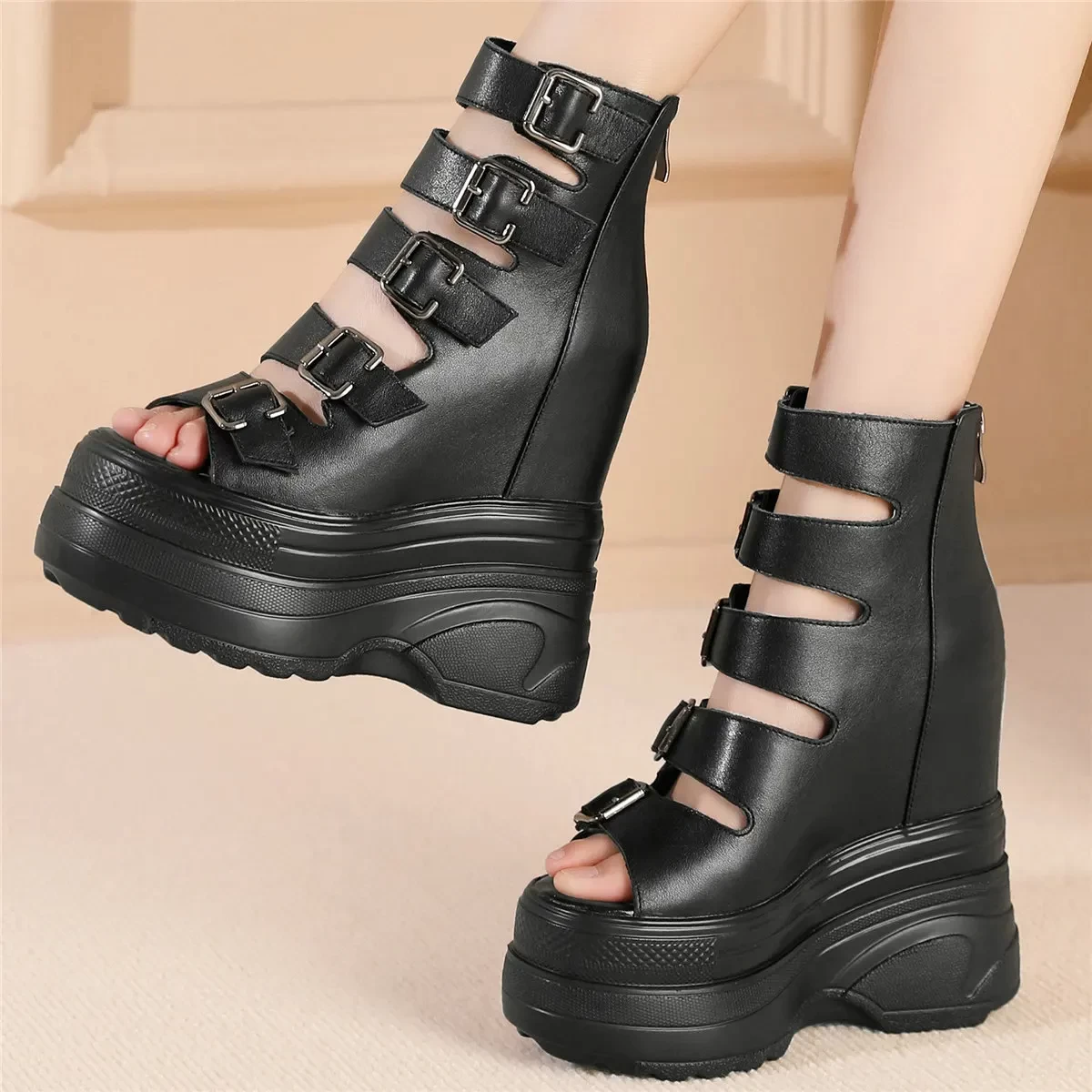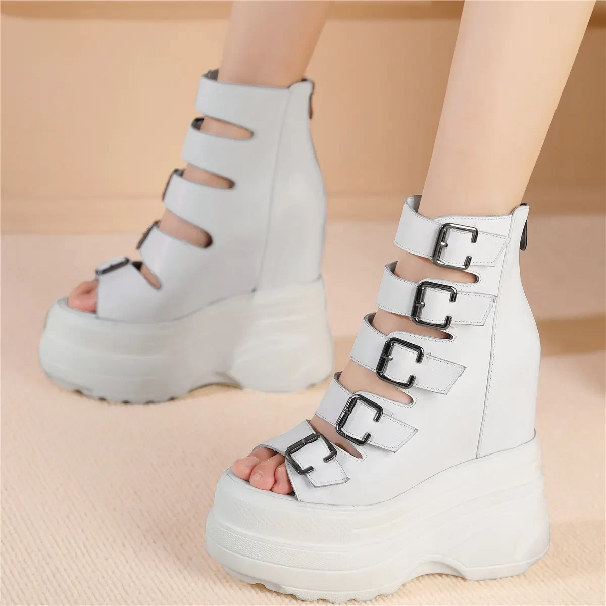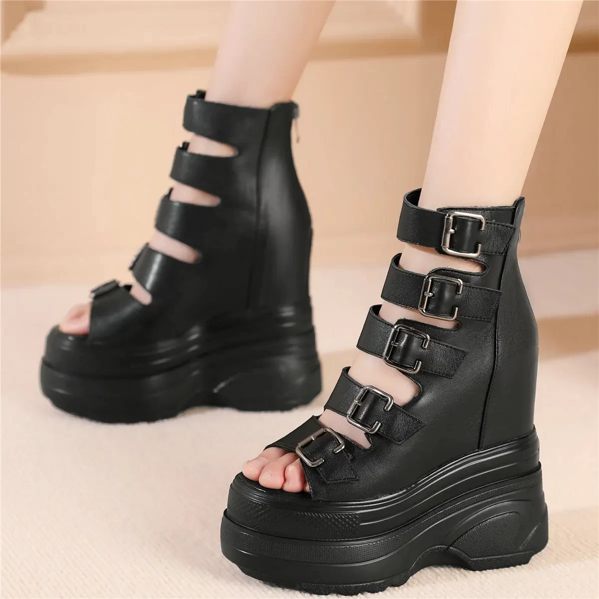 Open Toe Platform Pumps Women Genuine Leather Wedges High Heel Gladiators Sandals Female Ankle Straps Summer Fashion Sneakers