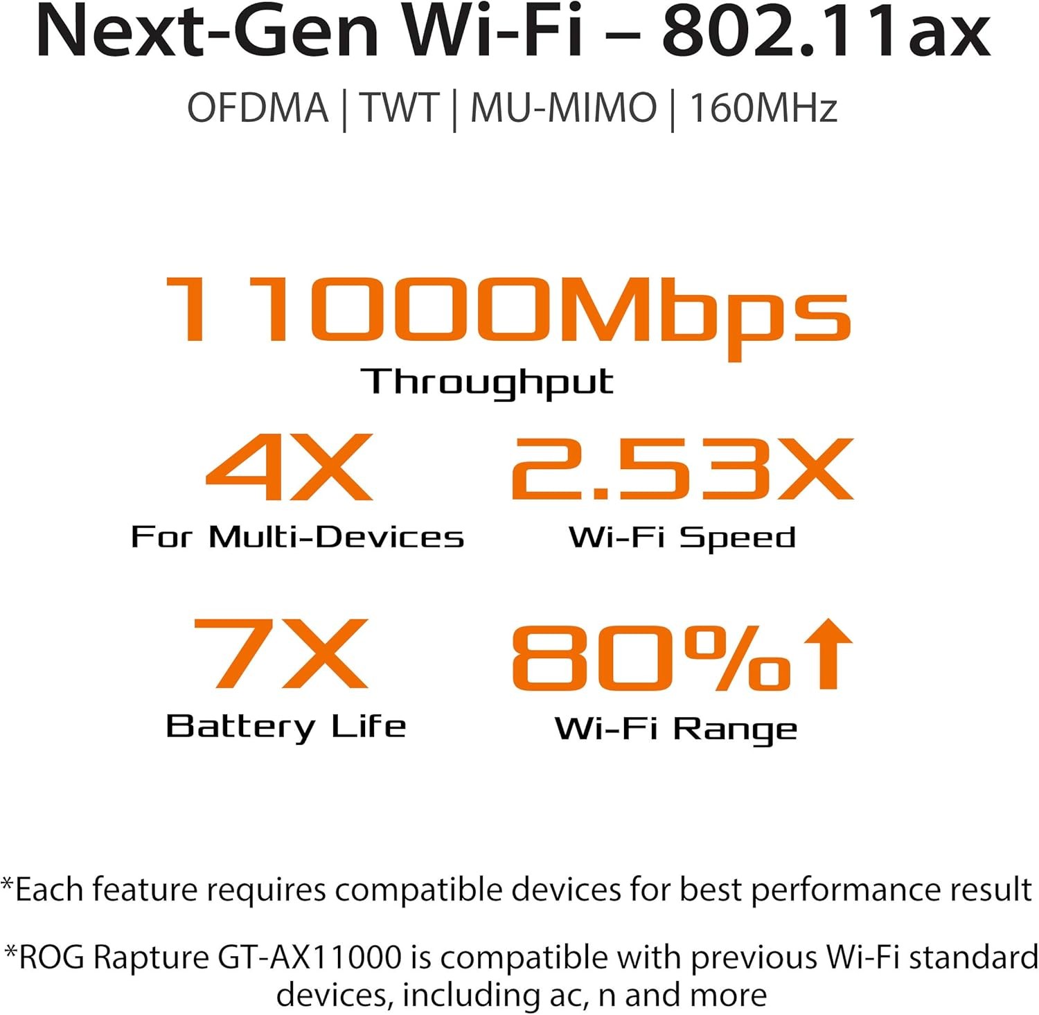 ROG Rapture GT-AX11000 IEEE 802.11ax Ethernet wireless router - 2.40 GHz ISM band - 5 GHz UNII band - 11000 Mbit/s wireless speed - 5 x Network ports - 1 x Broadband port - USB - 2.5 Gigabit Ethernet