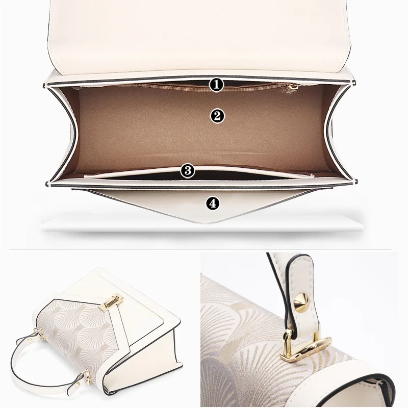 Women Luxury Bag Lady Handbag Female Messenger Split Leather Combine Ginkgo Leaves Embroidery Jacquard Fabric Shoulder Bag New